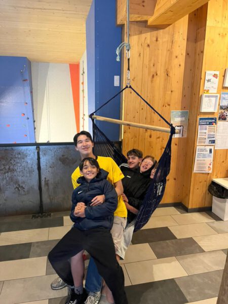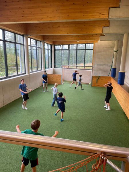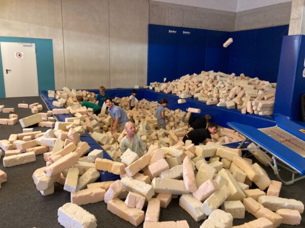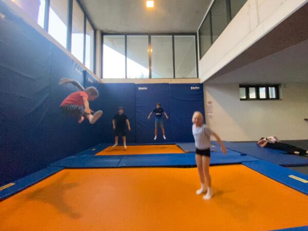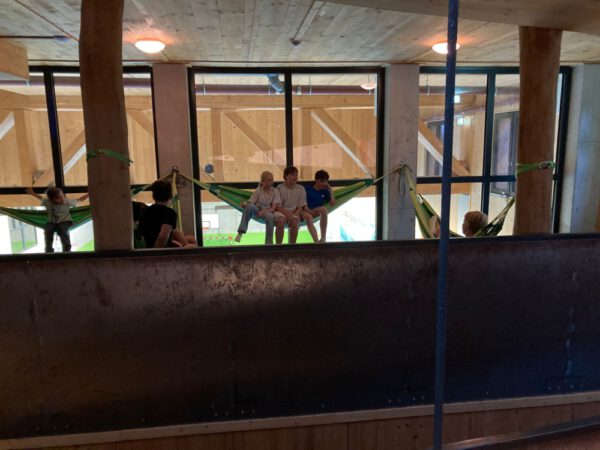 So konnten die Jungs und Mädels sich im Haus auf vier Trampolinen, Soccerhalle, Turnhalle, Billard, AirHockey, einer großen “Schnitzel”-Sprunggrube, einer Kletterwand und Pumptrack für Skateboard/Scooter auspowern. Man konnte aber auch einfach bei einem Puzzle, mit Gesellschaftsspielen oder auf einer der vielen Hängematten chillen.