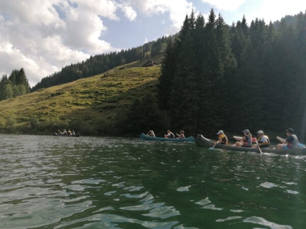 Einmal in den Booten lieferten sich die mit drei bis vier Personen besetzten Kajaks einige Rennen auf dem See. Die große Herausforderung war hierbei die Fahrerinnen und Fahrer im Boot zu koordinieren, was mal mehr und oft minder gelang und für viel Gelächter bei der Konkurrenz sorgte.