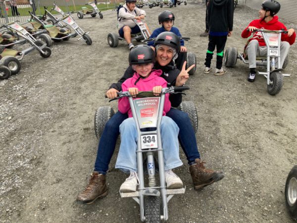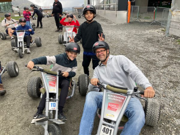 Am Nachmittag des 22.08. machten wir uns auf nach Bramberg, wo wir mit der Bergbahn zur 2.100m hochgelegenen Bergstation des Wildkogels fuhren. Oben angekommen machten wir uns mit Mountain-Carts ausgestattet, auf eine rasante Abfahrt hinuter zur Mittelstation. Ein Erlebnis was allen sichtlich riesen Spaß machte.